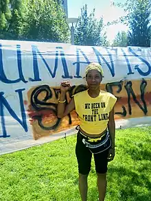 Demetria Hester (born November 30, 1974) is a Black activist, speaker, and hate crime survivor based in Portland, Oregon.[1] She is a frequent organizer of and speaker at Portland's George Floyd protests, Black Lives Matter rallies, and vigils for victims of police violence.[2]