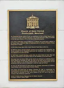In 1790, he attended Catholics settled in and around Cumberland, Maryland, and celebrated the first Catholic mass in Allegany County.[3] In the following year, a log chapel was constructed dedicated to Mary, the mother of God. This was later replaced by a larger church dedicated to St. Patrick.[4]