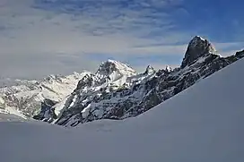 ![]() Dent Favre (right) and Grand Muveran (centre) from the north side | |