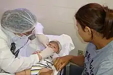 Dentistry for Babies is a branch of Pediatric dentistry related to the dental treatment provided to children from birth to around 36 months of age, aiming to maintain or re-establish a good oral health status, at the same time as it creates a positive attitude of parents and children about Dentistry.[1][2] Although concerns about dental treatment directed to babies have been reported at the beginning of the twentieth century, only recently has the dental community started to focus on this area of Dentistry, due to the high dental caries (decay) prevalence observed in young children. The first setting for providing dental care exclusively to babies started in 1986, at Londrina's State University (Brazil),[3] changing the concept from early treatment of carious lesions and their consequences to early educative-preventive attention. These concepts were disseminated throughout the entire country introducing new clinics with a similar philosophy such as the Baby Clinic of Araçatuba Dental School, São Paulo State University (UNESP),[4] and also abroad.[5]