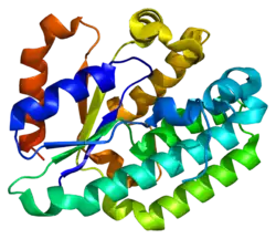 Deoxycytidine kinase (dCK) is an enzyme which is encoded by the DCK gene in humans.[5] dCK predominantly phosphorylates deoxycytidine (dC) and converts dC into deoxycytidine monophosphate. dCK catalyzes one of the initial steps in the nucleoside salvage pathway[6] and has the potential to phosphorylate other preformed nucleosides, specifically deoxyadenosine (dA) and deoxyguanosine (dG), and convert them into their monophosphate forms.[7] There has been recent biomedical research interest in investigating dCK's potential as a therapeutic target for different types of cancer.[6][7][8]