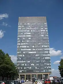 Research and study of archaeology at Sheffield developed over several decades. The first degree given for an archaeological subject at the University of Sheffield was to Percy Heathcote in 1930 as an MA for studying the burial mounds and stone circles on Stanton Moor and creating a small dedicated museum for the finds in Birchover.[6][7] In 1931 Arthur Woodward who had been Director of the British School at Athens was appointed to a lectureship in the Department of Ancient History at Sheffield.[8] Woodward had excavated at Sparta[9] and at Roman sites in Yorkshire including forts at Slack and Ilkley,[10] and the Roman villa at Rudston.[11] The appointment of Robert Hopper, a specialist on Greek coinage and the Acropolis, to the Department of Ancient History introduced the first explicit archaeological elements to the University's programs and establishment of the Department on the 7th Floor of the Arts Tower.[7] Hopper decided to concentrate on prehistory and appointed Warwick Bray in 1963 and Colin Renfrew in 1965 as lecturers to prepare the archaeology courses and set up a Single Honours degree in Prehistory and Archaeology with the first eight students graduating in 1970.[12][7] The course concentrated on theory and scientific methods in the context of British and European Prehistory.[8]