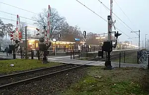 Deurne is a railway station in Deurne, Netherlands. The station opened on 1 November 1864 and is on the Venlo–Eindhoven railway. The station has 3 platforms, 1 where the stoptrein from Eindhoven terminates.