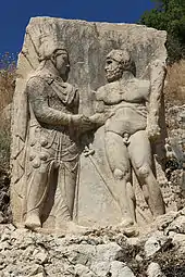 - ↑ Nevzat Çevik (2014), "Nemrud Dağ of Commagene: Dexiosis of East and West", Art et civilisation de l'orient hellénisé: Rencontres et échanges culturels d'Alexandre aux Sassanides, pp. 185–190, ISBN 978-2-70-8409835.