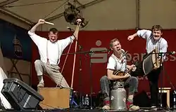 The band started as a one-event session at a local festival in Fulda in 1994. An unexpected success led the members to continue working together. The band members have a blue-collar background and express this in their lyrics and musical style. The band's motto, Musik von den Baumwollfeldern der Rhön,[2] translates into Music played on the Rhön Cotton Fields. The band members present themselves in hillbilly costumes, with corduroy trousers, braces and wooden shoes, and the acts include story telling and musical comedy on stage. Among the musical instruments in use are milk churns, electric shavers and wrenches;[3] sometimes brass elements are added as well.[4] The musical styles besides the peasant blues include Latin American rhythms, techno and also German pop, and they sometimes also make ironic use of operetta lines and melodies or standards, adapting them in line with their hayseed image. [5] The band has played at regional festivals and events in Germany.[6] It has been presented in German TV and radio.[6] Contributions to major festivals include among others Internationales Tanz und Folkfest Rudolstadt, Bardentreffen Nuremberg and the international street musician competition in Osnabrück.[6] The band has been described as a peculiar folk music invention with both rural down-to-earth and anarchic aspects.[7][8]