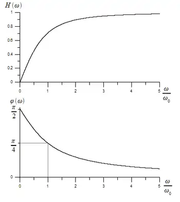 Indeed, according to Ohm's law, the voltages at the two ends of the capacitive differentiator are related by a transfer function that has a zero in the origin and a pole in and that is consequently a good approximation of an ideal differentiator at frequencies below the natural frequency of the pole: