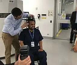 Palipana's interest includes non-invasive interventions to promote functional improvement in spinal cord injury.[85][86] Some of these interventions have involved electroencephalography (EEG) and electrical stimulation,[87] which was highlighted in Griffith University's Be Remarkable media campaign.[88] He has been encouraged by a mentor at Harvard University, where he was one of the first visiting medical students of this nature.[89] The project received $2 million Australian in 2019 from the Queensland Government.[90]