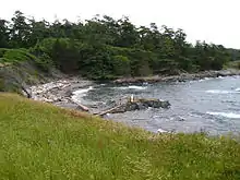 Designated as a park in 1972, the uninhabited and undeveloped 61-hectare Discovery Island Marine Provincial Park was once the home of Captain E.G. Beaumont, who purchased part of the island in 1918. He died in 1967 after living on Discovery Island with his wife for nearly half a century. Beaumont owned roughly 160 acres (half) of Discovery Island, and in his will gave his share of the island to the province of British Columbia (with the exception of 8.71 acres, which was transferred to Scouts Canada and later sold to private owners).[3] Beaumont was an avid seaman and even in his 80s would regularly row his boat from Discovery Island to Ten Mile Point, where he would go for walks in the woods. Evidence of the Beaumonts' beautiful home and gardens overlooking Rudlin Bay can still be seen. The home was designed on a nautical motif by the noted architect Francis Rattenbury.