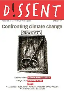 Dissent (rendered on the masthead as D!SSENT) was an Australian national magazine devoted to the analysis of politics, economics and issues in Australian society in general. It was published three times a year in Melbourne, Australia. The Co-editors were Kenneth Davidson[1] and Lesley Vick.[2] Kenneth Davidson also has a monthly column with the Melbourne newspaper The Age.