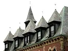 The District 13 Police Station is a historic former police station at 28 Seaverns Avenue in the Jamaica Plain neighborhood of Boston, Massachusetts. The Gothic Revival station was designed in 1873 by George Ropes and built for the town of West Roxbury, as one of its last public works before its annexation by Boston. An addition was designed in 1892 by Edmund M. Wheelwright, architect for the City of Boston. The building is one of the only high-style Victorian municipal buildings in the city.[2]
