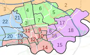 The City of Preston is divided into 22 wards, which are used in the creation of "Area Forums", local consultative bodies organised by city council; and also the composition of parliamentary constituencies.