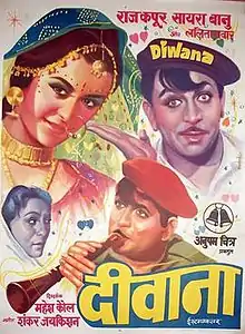 Diwana (lit. 'Crazy lover') is a 1967 Indian Bollywood film directed by Mahesh Kaul. The film stars Raj Kapoor, Saira Banu and Lalita Pawar in pivotal roles.[1][2] The film, made under the Anupam Chitra production banner had music by Shankar–Jaikishan, with lyrics by Hasrat Jaipuri and Shailendra.[3] Some songs are still popular like "Diwana Mujhko Log Kahein ", "Jisne Tumhe Chand Si Surat", "Hum To Jate Apne Gaon" and "Tumhari Bhi Jai Jai". This film is also remembered for Kamal Kapoor's strong performance as Raj Kapoor's father.