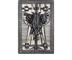 In late 2014 at ART re.FLEX Zhukov introduced the exhibition project ‘For Internal Use’, deliberately devoid of accompanying text of curator, which could interfere with the internal perception of the viewer. The object ‘No name’, which was a part of this project, then participated in numerous group exhibitions, including NordArt festival in Büdelsdorf, Germany. In August 2015, Zhukov as well as ten artists-innovators took part in a special project of 6th Moscow Biennale ‘Panopticon’ with a new series ‘Russian Lace’ – the study of the semantics of archaic pagan symbols, which resulted in fundamental objects of barbed wire. In 2016 ‘No name’ and ‘Russian Lace’ were presented at ’Steambaroque’ exhibition in the large exhibition hall of Stables housing at the Kirov Central Park.[4][2][13][14] In summer of 2016 it became known that ‘Russian Lace’ series would become part of the Russian sculpture park at the hotel ‘Château Gütsch‘ in Lucerne, which is owned by Alexander Lebedev.[15]