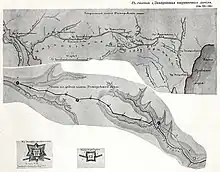 The Dnipro Line was a line of fortifications built by the Russian Empire during the Russo-Turkish War (1768–1774) stretching 180 kilometers from the Dnipro knee to the shores of the Sea of Azov along the Konka and Berda rivers. In the north, the line hinged on the Oleksandrivsk fortress, now Zaporizhzhia, and in the south on the Saint Peter fortress near the modern city of Berdiansk. The line lost its relevance and was abandoned after the annexation of the Crimean Khanate in 1783.[1][2]