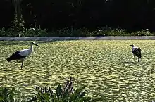 There are also many species of birds, including eurasian eagle-owls, golden pheasants, peacocks, mute swans, rosy pelicans, white stork, and many fowl species.