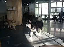 A dog café is a type of business establishment where typically customers pay to spend time with domesticated canines for purposes of entertainment and relaxation.[1][2] Such cafés may also provide other services such as food and beverages.[2]