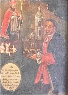 Established in Buenos Aires fulfilled various political and military roles, including treasurer and accountant, and the vice-mayor of the city.[5] His most important work was related to the construction of the Church of San Nicolás de Bari.[6] He also was involved in the slave trade of Buenos Aires with the French and English factories.[7] His house was located in the vicinity of the Real Asiento de Inglaterra, a factory belonging to South Sea Company.[8]