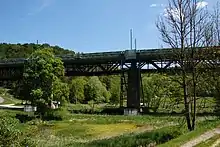 Larger bridges on the northern section are the 183 metre-long Obere Möhrenbachbrücke near Möhren and the Untere Möhrenbachbrücke at Dickmühle. The Obere Möhrenbach Bridge has four spans and, like the Wörnitz Bridge, consists of fish-belly girders and a separate superstructure for each track.[8]