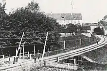 The railway from Neuoffingen to Regensburg was opened in 1877. This crossed the existing line to Augsburg in Donauwörth. Therefore, the present Donauwörth station was built, from 1874 to 1877, in the southwest of the city and it was opened on 15 November 1877. In the Second World War Donauwörth station was destroyed in air attacks on 11 and 19 April 1945. It was reconstructed from 1948 to 1953.[6] In 2001, the station forecourt was redesigned as a bus station.