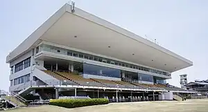 Prior to the opening of Doomben racecourse, a grandstand was built by the Kell and Rigby construction company in 1932. Architecture services were provided by G.H.M. Addison and MacDonald with the contract price of the grandstand amounting to 23,344 pounds.[7] Following this, new additions were made to the grandstand in 1982 costing a total of $8 million.[8] As at 2021, this grandstand is split into a members stand and a public stand enclosing venues such as the Satchel, Chief De Beers, Vo Rogue, 10,000 and Home Return rooms which were last renovated in 2018.[1]