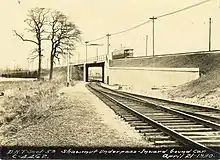 Milton Branch freight tracks pass under the high-speed trolley line at Shawmut Junction in 1930