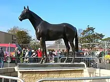 He has been honoured with a bronze statue at Doncaster Racecourse.[19]