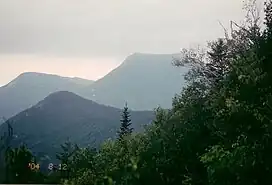 The mountain's two peaks are a north peak (3,489 ft or 1,063 m) and a south peak (3,455 ft or 1,053 m). From the north a trail from the Nesowednehunk Campground to the north peak is 3.1 miles (5.0 km) long and another 0.2 miles (0.32 km) to the south peak. From Foster Field, to the south, a 4-mile (6.4 km) trail leads to the summit. The last third of mile (0.53 km) is steep and climbs about 900 feet (270 m).[4] The north peak is wooded while the south peak is more open.