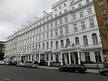 The first Douglas House opened in the former Guards Club on Brook Street, W1, either during or immediately after the Second World War as a leave centre for US servicemen. The building that housed the second club was originally a block of white stuccoed flats or townshouses built in the Victorian era as part of a Bayswater area real estate development. After the Air Force acquired the property, the Douglas House began operating on 2 May 1959. It was jointly named for Air Force Secretary James H. Douglas, Jr. and Lewis Williams Douglas, a former US ambassador to Great Britain.[6] In 1960, in honour of the marriage of Princess Margaret and Anthony Armstrong Jones, the club attracted attention by offering free dinners on the royal wedding day, 6 May, to any serviceman named Tony who had a wife named Margaret.[7] That same year, the Douglas House sponsored an Independence Day celebration in Battersea Gardens that attracted thousands of American servicemen and their families.[8] In November 1960 the club hosted an all-night presidential election watch party.[9] In late 1962 a five-piece London band called the Detours played several dates at the Douglas House nightclub. Later, after changing their name to The Who, the group went on to become of one Great Britain's most popular and successful rock bands.[10][11] On 12 June 1963, Country and Western singer Jim Reeves also performed at the Douglas House.[12] In 1970 the Douglas House was sold by Druce and Company to Adda Hotels, which later remodelled the property and then reopened it as the 188-room full-service Charles Dickens Hotel.[13] In 1999, the property was acquired by Ryan Hotels for £16.9 million.[14] Following further remodelling, it was operated as the Hyde Park Gresham Hotel until 2007 when it became the Park Inn Hotel. Presently, the property is known as the Lancaster Gate Hotel (not to be confused with the nearby Lancaster, London).