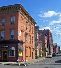 The Downtown Cohoes Historic District takes up 35 acres (14 ha) of the city of Cohoes, New York, United States. Many of the 165 contributing properties date from the 1820-1930 period when the Erie Canal and Harmony Mills were the mainstay of the city's economy. It was recognized as a historic district and added to the National Register of Historic Places in 1984. After years of neglect and decline, it has recently started to see an upswing in business activity due to its historic character and the city's efforts to protect it.