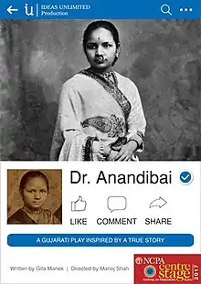 7. "Dr. Anandibai - Like, Comment, Share Gujarati Play/Drama". www.MumbaiTheatreGuide.com. Archived from the original on 27 October 2020. Retrieved 24 October 2020.
