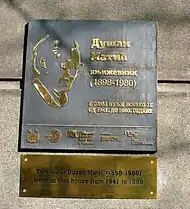 Matić fled from Belgrade following the April War to stay with his friends, the Minić family, in Prijepolje. He barely escaped the Ustaše attack on Prijepolje and made it to Belgrade before September 1941.[20] He was arrested in December along with Aleksandar Vučo and interred at the Banjica concentration camp.[2] Matić was released in February 1942, but remained under police surveillance until the 1944 Allied bombing of Belgrade when travel became easier. He left for Užice in April 1944, where he stayed at Zabučje, a nearby hill. He returned to Belgrade in August 1944, and was staying at Oliver Minić's Hotel Majestic during the Belgrade Offensive.[21][16]