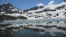 The Dudipatsar Trail is an approximately 18 km (11 mi) hiking trail in the Lulusar-Dudipatsar National Park of Khyber-Pakhtunkhwa, in northern Pakistan. The trail goes along a tributary of the Kunhar River called Poorbi Narr in the northern Kaghan Valley. The headwater for the particular tributary is the Dudipat Lake and the trail has a cumulative elevation gain of 640 metres (2,100 ft). The average time taken to complete the trail is 5 to 8 hours.