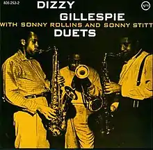 Duets is an album by trumpeter Dizzy Gillespie featuring Sonny Rollins and Sonny Stitt, recorded in 1957 and released on the Verve label. The recordings on this album are from the same sessions and with the same personnel that produced the Sonny Side Up album which had Sonny Stitt and Sonny Rollins playing simultaneously with Dizzy Gillespie. On the Duets album, as the name implies, Sonny Stitt and Sonny Rollins played separately with Dizzy Gillespie.[2]