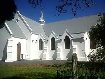 The Dutch Reformed Church in Durbanville is a church building of the Dutch Reformed Church in Durbanville, South Africa,[1] built in 1825 in the Cape Dutch style.[2] The village was then still called Pompoenkraal. A separate bell tower has been built near the church with a bell visible from the outside. The church was enlarged in 1891. The building was restored and rededicated in 1957. The community of Durbanville has grown rapidly, especially in the 20th century.[3]
