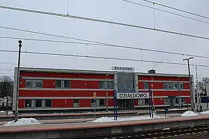 Działdowo railway station is a railway station serving the town of Działdowo, in the Warmian-Masurian Voivodeship, Poland. The station is located on the Warsaw–Gdańsk railway, Działdowo–Chojnice railway and Działdowo–Olsztyn railway. The train services are operated by PKP, Polregio and Koleje Mazowieckie.