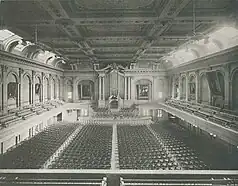 The Hook brothers were sons of a cabinet maker in Salem, Massachusetts, where they apprenticed with the organ builder William Goodrich. They moved to Boston in 1832 and began producing larger organs. In 1845 they produced their first concert hall organ in the Tremont Temple in Boston which later burned.[1] Their largest concert hall organ—indeed the "oldest unaltered four-keyboard pipe organ in the Western hemisphere located at its installation site"[2]—was installed in 1864 at Mechanics Hall (Worcester, MA). In 1983 it was restored by the Noack Organ Company as closely to its 1864 state as possible.