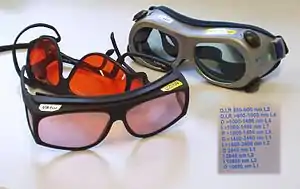 - ↑ SS-EN 207:2017 (E) EUROPEAN STANDARD EN 207 - Personal eye-protection equipment - Filters and eye-protectors against laser radiation (laser eye-protectors) (ICS 13.340.20). CEN-CENELEC Management Centre: Avenue Marnix 17, B-1000 Brussels: EUROPEAN COMMITTEE FOR STANDARDIZATION. March 2017.