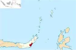 East Bolaang Mongondow Regency is a regency of North Sulawesi Province of Indonesia. It was created on 24 June 2008 by splitting off districts which were previously part of Bolaang Mongondow Regency. It covers an area of 910.18 sq km and had a population of 63,654 at the 2010 Census,[2] rising to 87,241 at the 2020 Census;[3] the official estimate as at mid 2022 was 92,299.[1] The principal town lies at Tutuyan.