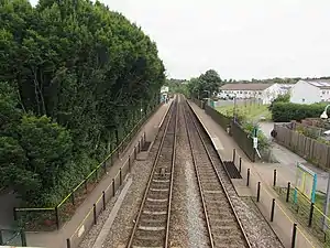 Eastbrook railway station is a railway station serving the Eastbrook area of Dinas Powys, a village near Cardiff, South Wales. It is located on Network Rail's Barry Branch 3+12 miles (5.6 km) south of Cardiff Central towards Barry Island and Bridgend (via Barry and Rhoose).