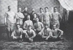 Michigan State Normal School first fielded a football team in 1891.[3] Initially the team had no official nickname, being known variously as the "Normalites" or the "Men from Ypsi". From 1892 to 1926, the team competed in the Michigan Intercollegiate Athletic Association, winning conference championships in 1896 and 1925. (Although the MIAA did not recognize football as an official sport until 1894, MIAA teams competed against each other as early as 1891.)[4] After playing football for three years at the University of Michigan, including being on the undefeated 1898 Michigan Wolverines football team that won the university's first Western Conference championship, Clayton Teetzel travelled six miles east to Ypsilanti, where he became the first person to coach the Michigan State Normal College football team for more than one year. From 1900 through 1902, his teams compiled a 6–14–1 record.[5]