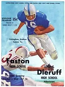 - ↑ Stypulkoski, Matt. "Ranking the 31 fiercest rivalries in N.J. HS football", NJ Advance Media for NJ.com, October 27, 2017, updated May 15, 2019. Accessed December 1, 2020. "2-Phillipsburg vs. Easton (Pa.)... If it was two squads from the Garden State, it would probably be No. 1. But these two teams separated by the Delaware River have been meeting since 1905 with interstate bragging rights on the line. All-time series: Easton leads series, 63-42-5"