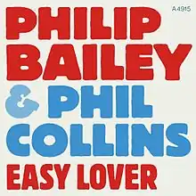 "Easy Lover" is a song performed by Philip Bailey of Earth, Wind & Fire and Phil Collins of Genesis, and jointly written and composed by Bailey, Collins, and Nathan East. The song appeared on Bailey's solo album, Chinese Wall. Collins has performed the song in his live concerts, and it appears on both his 1990 album, Serious Hits... Live!, and his 1998 compilation album, ...Hits. It is Bailey's only US Top 40 hit as a solo artist.