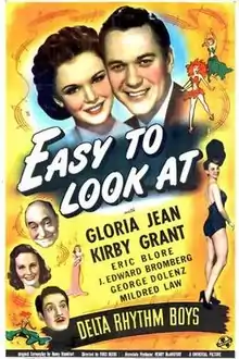 Easy to Look At is a 1945 American comedy film directed by Ford Beebe and written by Henry Blankfort. The film stars Gloria Jean, Kirby Grant, J. Edward Bromberg, Eric Blore, George Dolenz, and Mildred Law. The film was released on August 10, 1945, by Universal Pictures.[1][2][3]