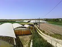 Póvoa de Varzim is part of the ancient Vinho Verde winemaking region. In the coast, the masseira farm fields were developed. This technique increases agricultural yields by using large, rectangular depressions dug into sand dunes, with the spoil piled up into banks surrounding the depression. Grapes are cultivated on the banks to the south, east and west, and trees and reeds on the northern slope act as a windbreak against the prevailing northern wind. Garden crops are grown in the central depression.[7] Production is still specialized in horticultural goods, but most of the masseiras were substituted by greenhouses and a significant share of the production is exported to other Western European markets. The inland valley region is committed to milk production and the Agros corporation headquarters of Lactogal, the largest dairy products and milk producer company in the Iberian Peninsula, is located in Espaço Agros and has several departments such as exhibition park and laboratories, and the largest agricultural project in northern Portugal.[8]