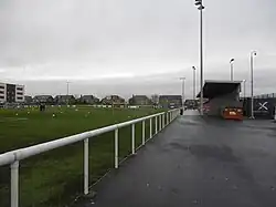 In February 2013, the City of Edinburgh Council started a new consultation process about the future of Meadowbank Stadium.[24] Three options for redeveloping Meadowbank were put forward for consideration by Edinburgh Council in December 2013.[25] A planned design was made public in November 2016[26] and work began after the 2016–17 season ended.[27] Edinburgh City reached an agreement with Spartans to use their Ainslie Park ground for three seasons while Meadowbank is redeveloped.[28] The club announced in March 2021 that they would return to Meadowbank for the 2021–22 season, with the ground now having a 4G artificial playing surface and a 500-seat stand.[29] Due to construction delays because of the Covid-19 pandemic, the club remained at Ainslie Park for the 2021–22 season.[30]