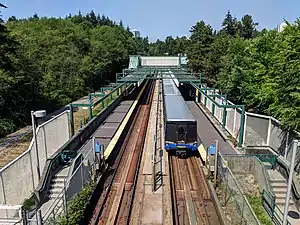 SkyTrain's maintenance and storage facility serving both the Expo and Millennium lines is one block east of this station, linked to and from the main guideway by multiple switch tracks.