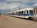 The Valley Line uses low-floor Bombardier/Alstom Flexity Freedom vehicles.[33] The vehicles used in Edmonton are composed of seven articulated segments, and run as single trains or may be coupled together. Forty six more low-floor LRT vehicles were ordered in 2021 from Hyundai Rotem for the Valley Line, to be put in service when the West extension to Lewis Farms opens.[29]