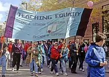 In 1991, the New York City Board of Education produced a curriculum for first grade teachers entitled "Children of the Rainbow," that supported multicultural education under New York City Public schools chancellor Joseph A. Fernandez.[13] The controversies surrounding this curriculum blocked its usage in classrooms in 1992. However, activist groups such as the Anti-Violence Project and Queens Gays and Lesbians United protested its rejection and championed the need for community educational resources. These actions also spurred the formation of the first Queens Pride Parade by community leaders such as public school teacher and later New York City Council member Danny Dromm and activist Maritza Martinez.[14]