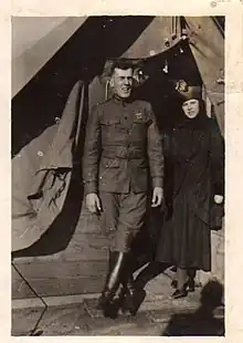 Brooks was commissioned as a second lieutenant of the Cavalry Branch in the Regular Army of the United States Army in August 1917, four months after the American entry into World War I, was promoted to first lieutenant the same date and was assigned to the Army Service Schools at Fort Leavenworth, Kansas.[1] In November 1917, he was transferred to the 76th Field Artillery Regiment at Camp Shelby, Mississippi, moving with his regiment to Camp Merritt, New Jersey, in March 1918. The regiment was part of the 3rd Division. At that post he was assigned to the 3rd Field Artillery Brigade in command of a detachment (later G-3) that sailed for France to reinforce the American Expeditionary Forces (AEF) in April 1918.[4]: 62
