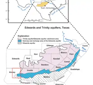 - ↑ "Introduction to the Edwards Aquifer". www.edwardsaquifer.net. Retrieved 2015-11-05.